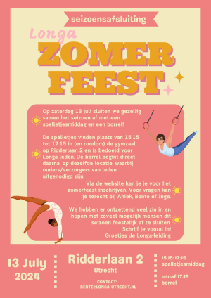 Lieve Longa leden, met de zomervakantie en daarmee de laatste lessen in zicht, is het ook weer bijna tijd voor het zomerfeest! Op zaterdag 13 juli vanaf 15:15 zullen we samen het seizoen afsluiten en de zomer inluiden.